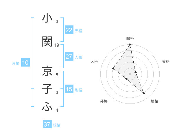 小関 京子ふさんを姓名の画数から五運を鑑定