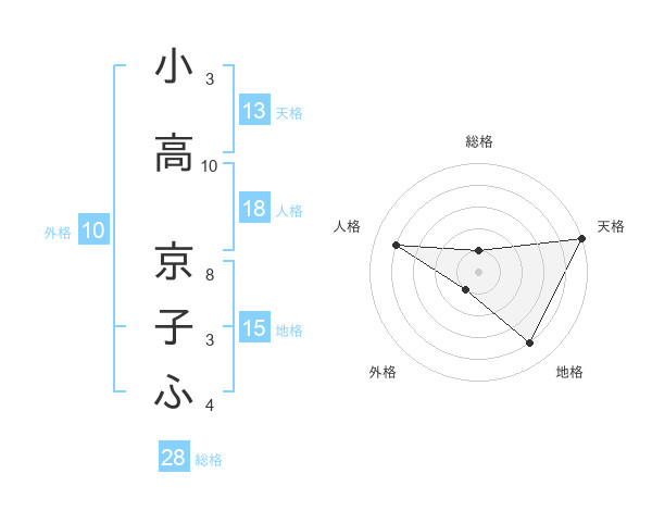 小高 京子ふさんの天格は13画の5点!