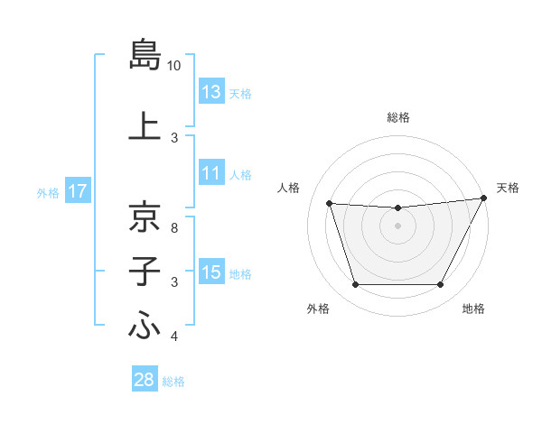 島上 京子ふさんの天格は13画の5点!