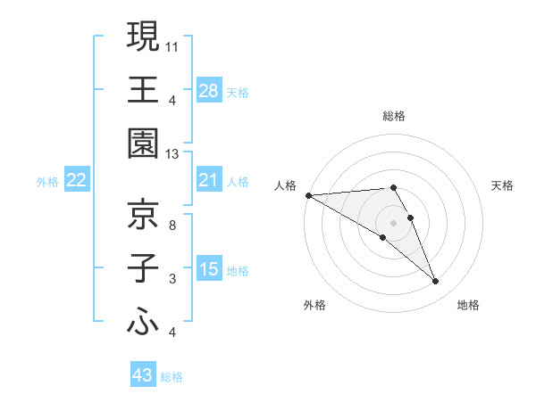 現王園 京子ふさんを姓名の画数から五運を鑑定