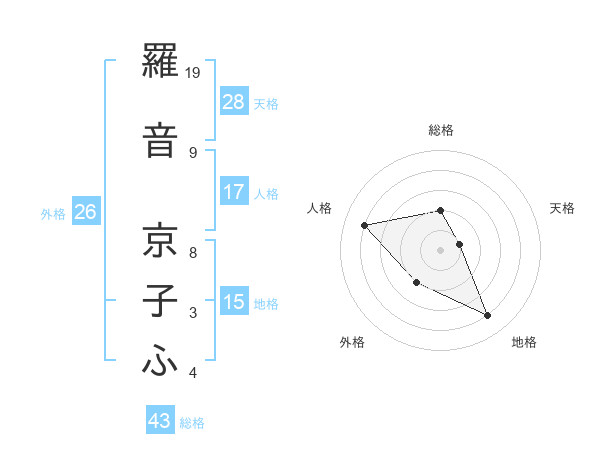 羅音 京子ふさんを姓名の画数から五運を鑑定