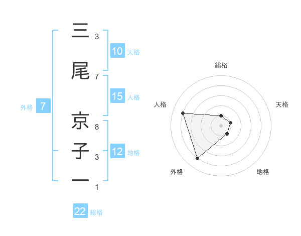 三尾 京子一さんの総格は22画の1点!