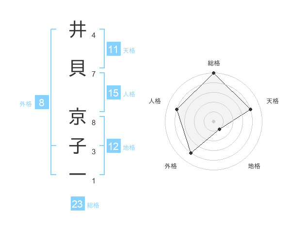 井貝 京子一さんを姓名の画数から五運を鑑定