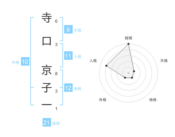 寺口 京子一さんの総格は21画の5点!