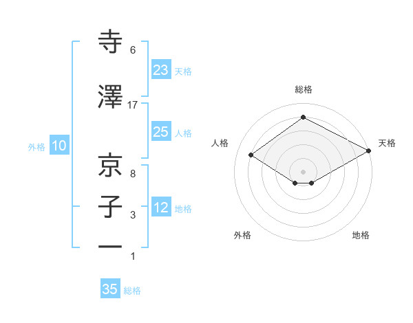 寺澤 京子一さんを姓名の画数から五運を鑑定