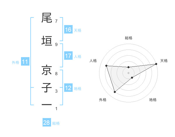 尾垣 京子一さんを姓名の画数から五運を鑑定