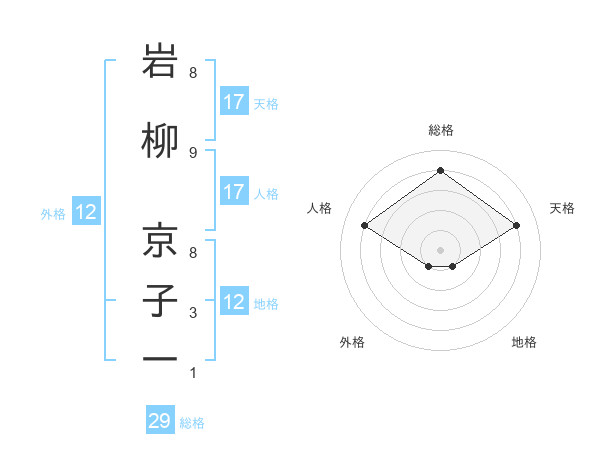 岩柳 京子一さんの総格は29画の4点!