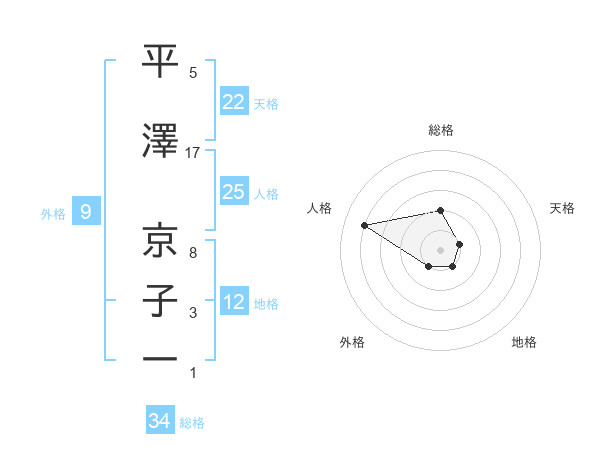平澤 京子一さんを姓名の画数から五運を鑑定