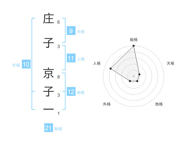 庄子 京子一さんの総格は21画の5点!