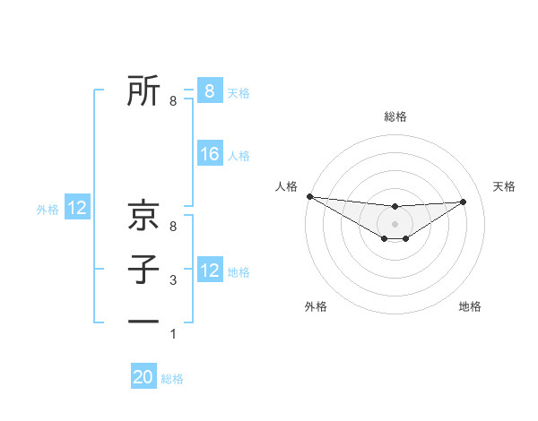 所 京子一さんの天格は8画の4点!