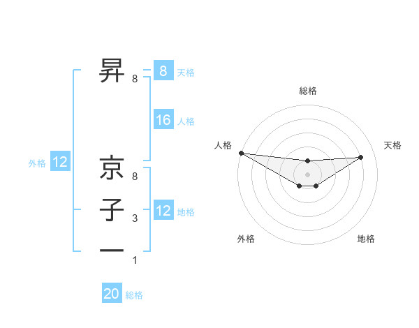 昇 京子一さんの天格は8画の4点!