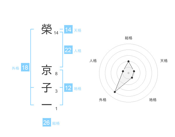 榮 京子一さんの総格は26画の2点!