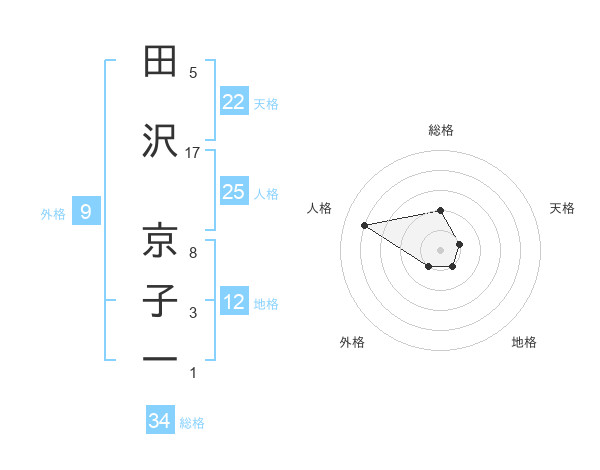 田沢 京子一さんを姓名の画数から五運を鑑定