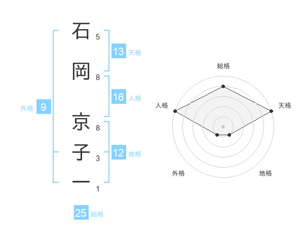 石岡 京子一さんを姓名の画数から五運を鑑定