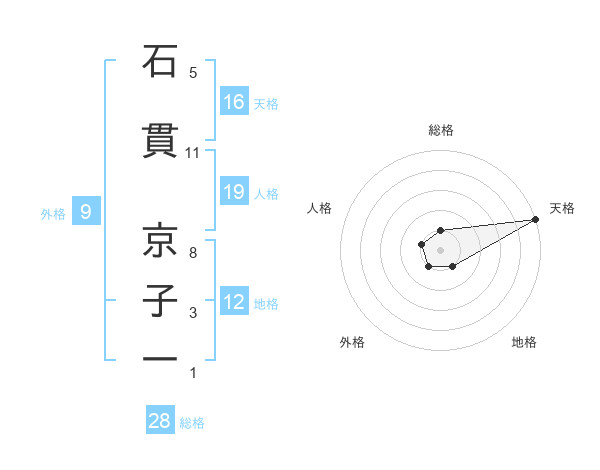 石貫 京子一さんを姓名の画数から五運を鑑定