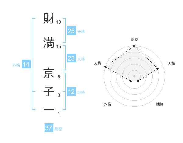 財満 京子一さんの総格は37画の5点!