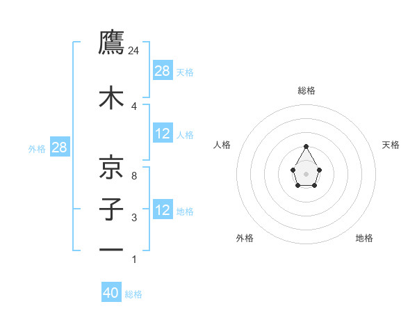 鷹木 京子一さんの地格は12画の1点!