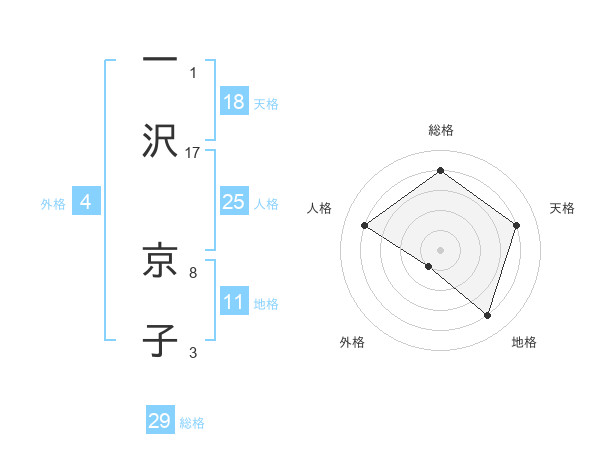 一沢 京子さんの総格は29画の4点