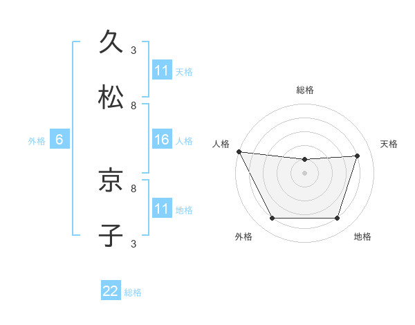 久松 京子さんの総格は22画の1点!