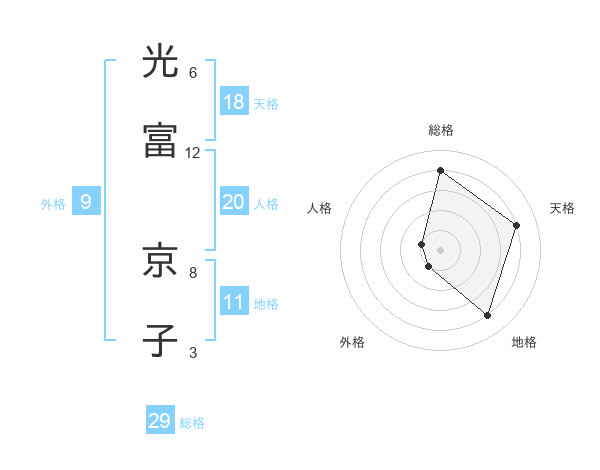 光富 京子さんの総格は29画の4点!