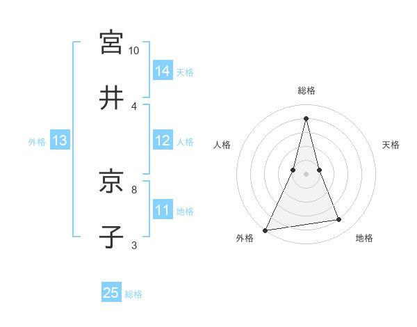 宮井 京子さんの外格は13画の5点!