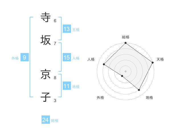 寺坂 京子さんの天格は13画の5点!