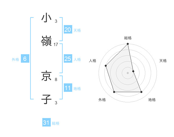 小嶺 京子さんを姓名の画数から五運を鑑定