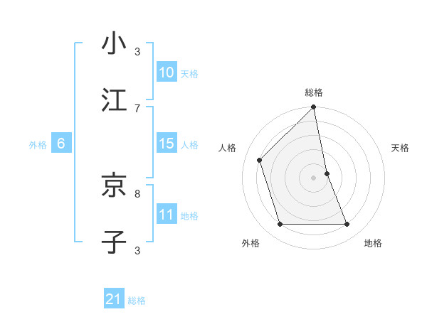 小江 京子さんの総格は21画の5点!