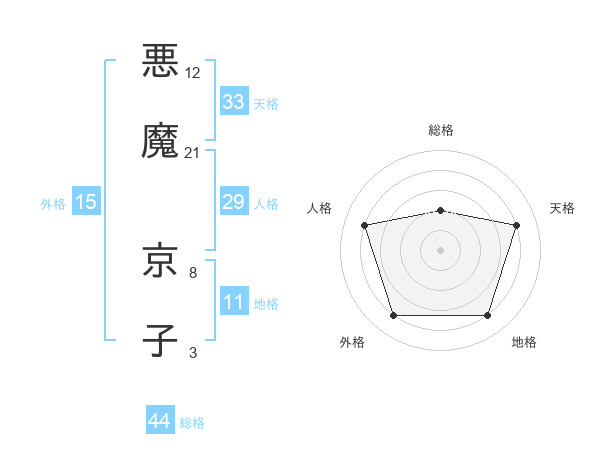悪魔 京子さんの天格は33画の4点!