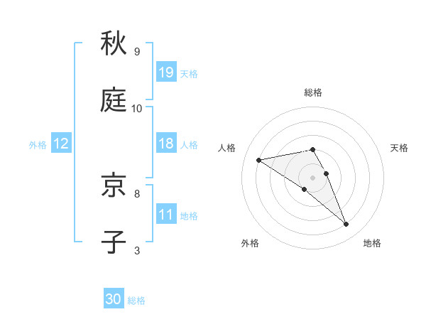 秋庭 京子さんの外格は12画の1点!