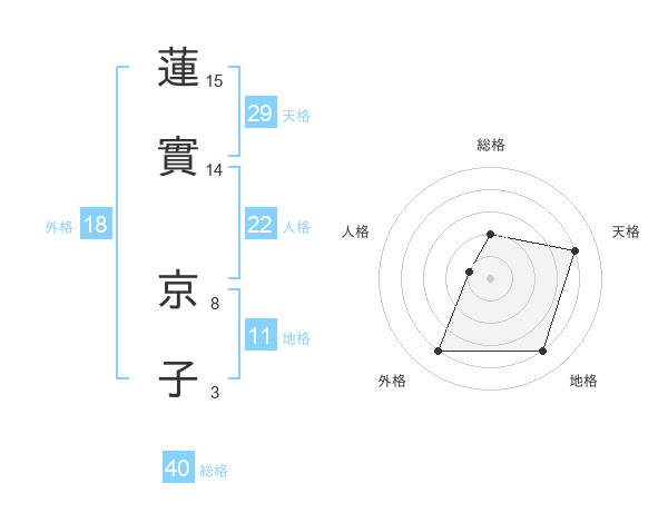 蓮實 京子さんの外格は18画の4点!