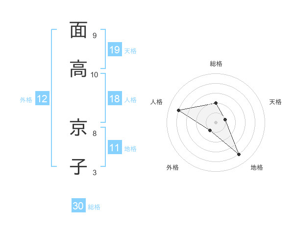 面高 京子さんの天格は19画の1点!