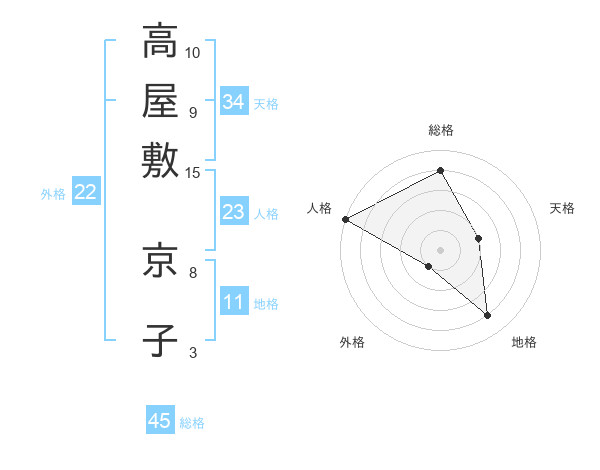 高屋敷 京子さんを姓名の画数から五運を鑑定