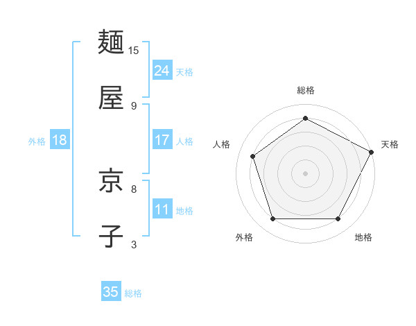 麺屋 京子さんを姓名の画数から五運を鑑定