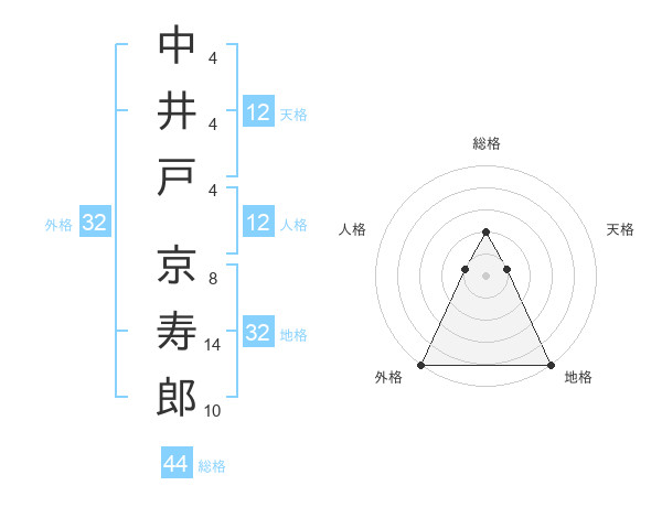 中井戸 京寿郎さんの総格は44画の2点!