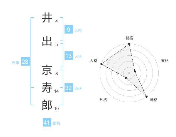 井出 京寿郎さんの総格は41画の5点!
