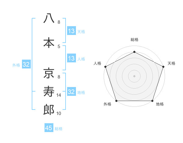 八本 京寿郎さんの外格は32画の5点!
