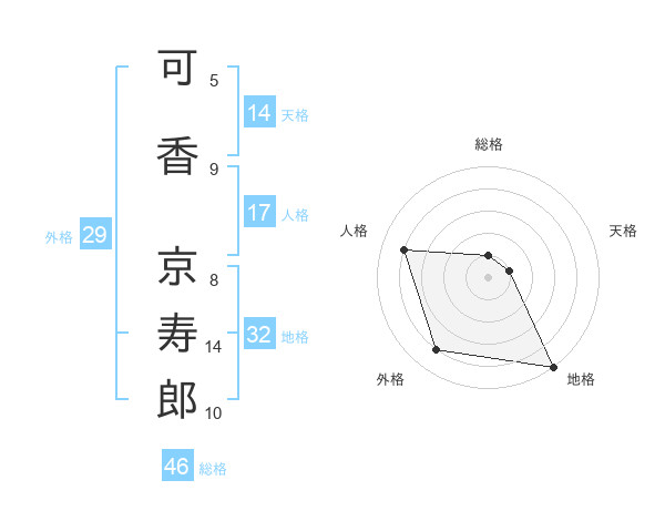 可香 京寿郎さんを姓名の画数から五運を鑑定
