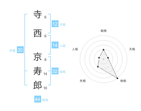 寺西 京寿郎さんを姓名の画数から五運を鑑定