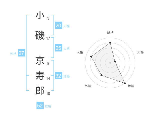 小磯 京寿郎さんを姓名の画数から五運を鑑定