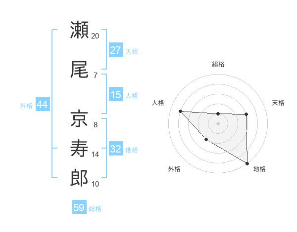瀬尾 京寿郎さんを姓名の画数から五運を鑑定