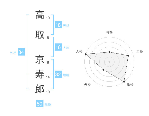 高取 京寿郎さんの総格は50画の2点!