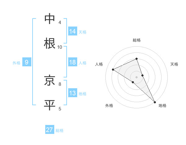 中根 京平さんの総格は27画の3点!
