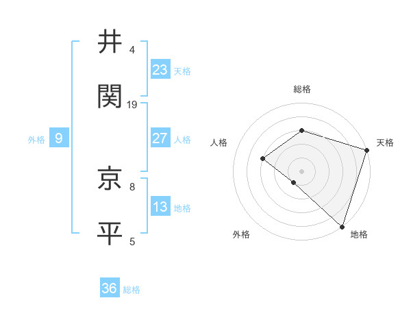 井関 京平さんの天格は23画の5点!