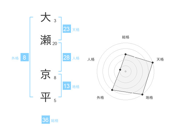 大瀬 京平さんの天格は23画の5点!