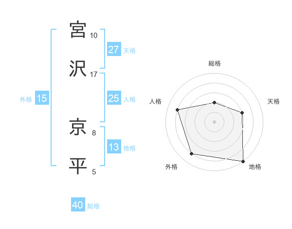 宮沢 京平さんの総格は40画の2点!