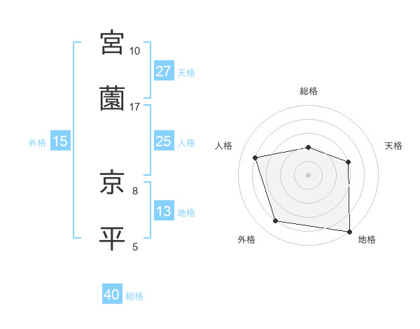 宮薗 京平さんを姓名の画数から五運を鑑定