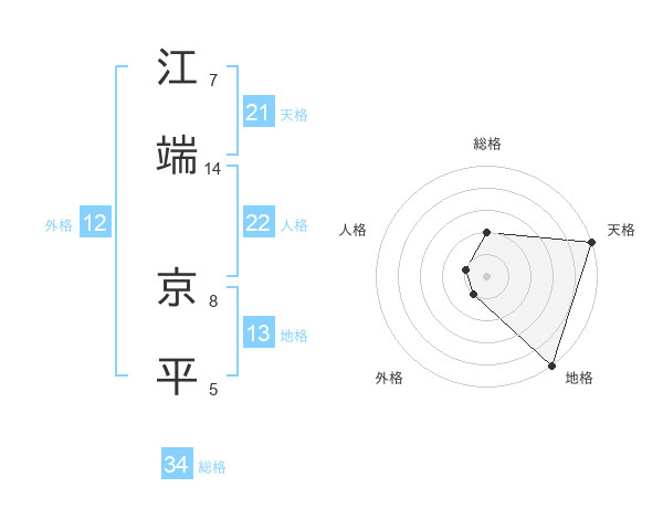 江端 京平さんの天格は21画の5点!