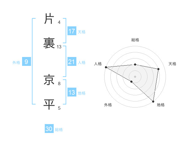 片裏 京平さんの天格は17画の4点!