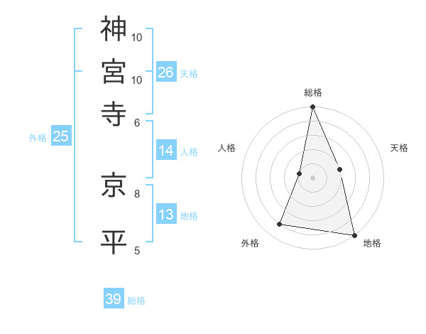 神宮寺 京平さんの総格は39画の5点!